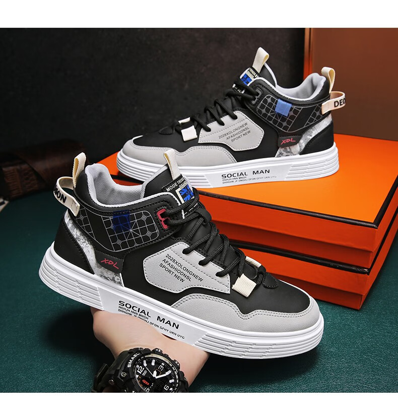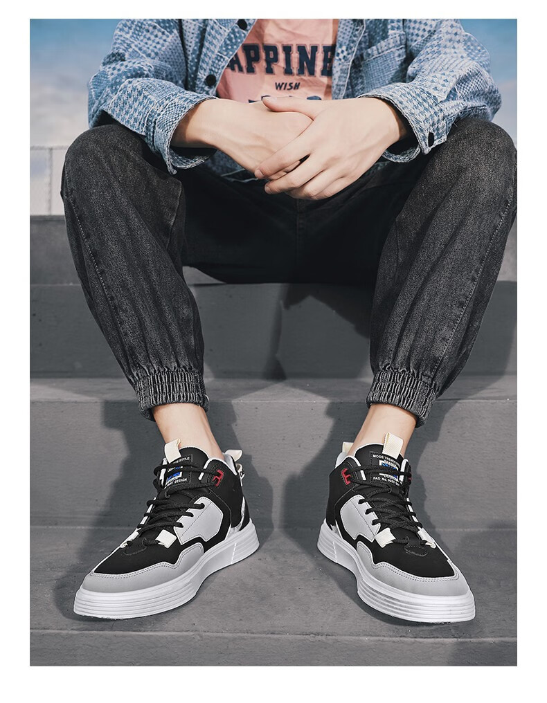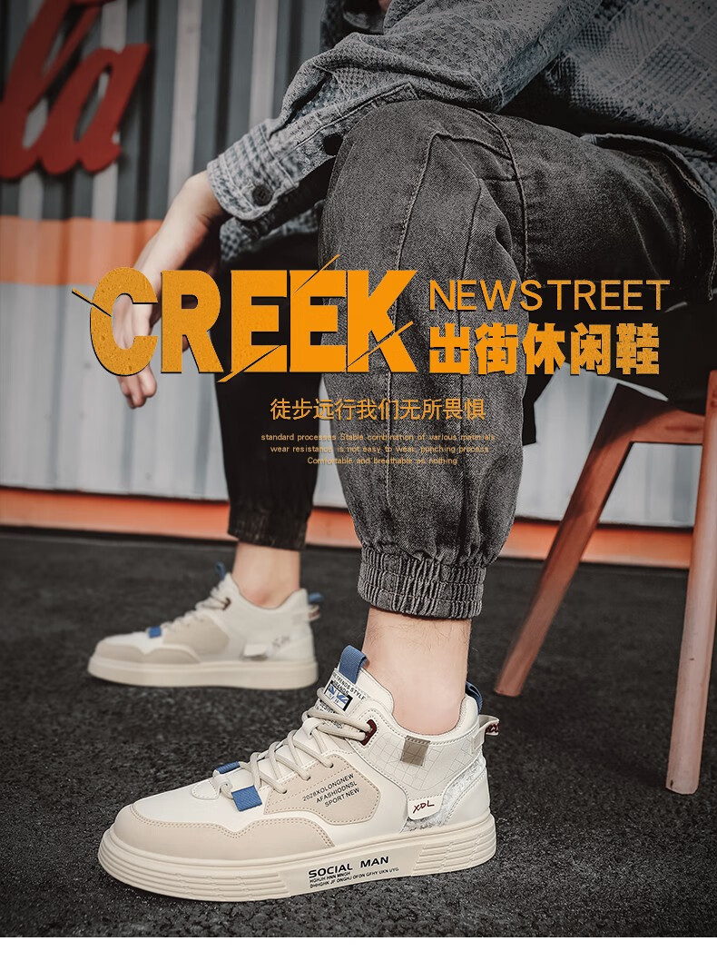 春季新款板鞋高帮运动休闲鞋青少年时尚秋季小白休闲男潮鞋子 米色【网面款】2250-1 42